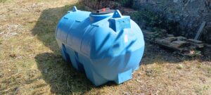 Pour des raisons de coût, je n’ai retenu qu’une modeste citerne en polyéthylène alimentaire d’un m3, soit donc 1000 litres. Ce qui est évidemment peu et beaucoup… Tout dépendant de la durée de pénurie à couvrir.